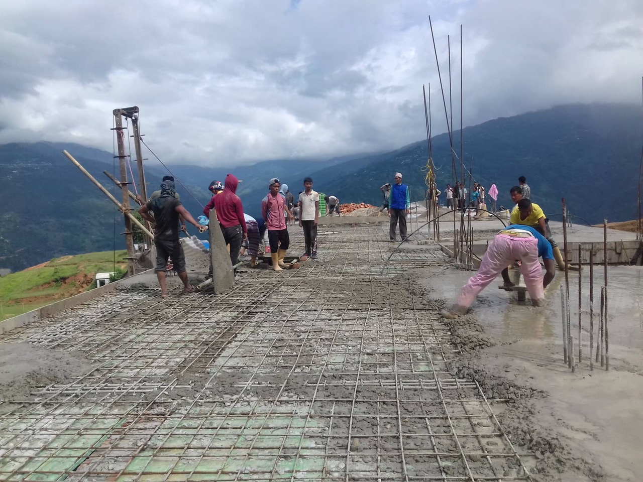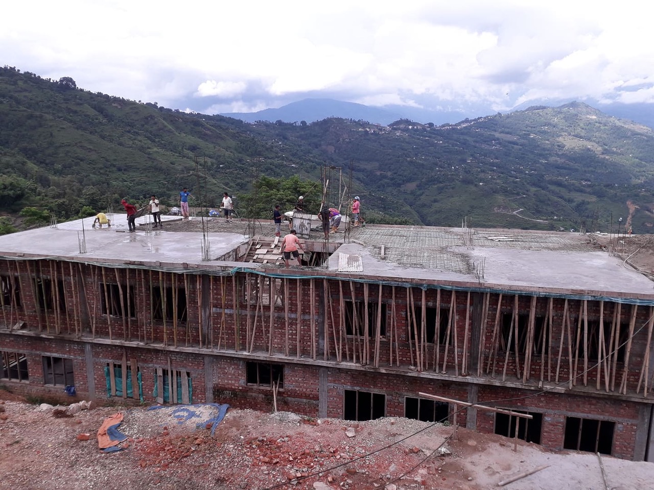 We are excited to share that a recent break in the monsoons allowed our construction crew at our Sharada School project to pour the concrete roof thus completing structure of our 8 classroom school building. We anticipate that interior finishing, & exterior smooth coat/parging & painting will be complete by the end of September.